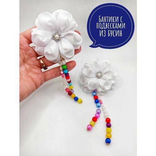НАЙТИ ВЫГОДНЕЕ - Белые Бантики для девочки с подвесками бусинками, стразами