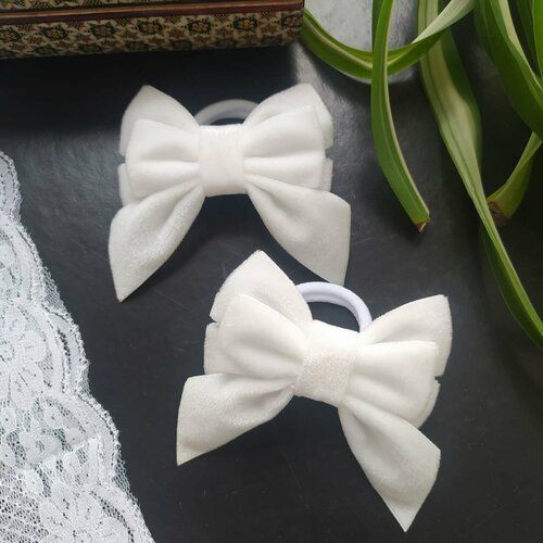 НАЙТИ ВЫГОДНЕЕ - Бантики для школы на резинке Banti_Ka, белые бархатные, 8х6 см, набор из 2 штук