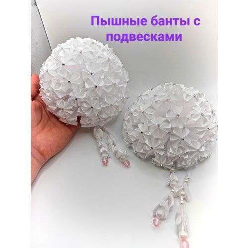 Шикарные пышные банты, с подвесками, которые можно снимать. полностью ручная работа. Очень красивые банты на резинках, диаметром 11-12 см, резиночки 3.5 см. Пышные и воздушные бантики - полусферы, собраны из атласных лент, и украшены сияющими стразами (не пластик). Идеальны для торжества, выпускного, 1 сентября и конечно же в качестве подарка) вашим близким обязательно понравятся и вы останетесь довольны. Пользуйтесь с удовольствием и добавьте наш магазин в избранное будем рады видеть вас. Бусинки на подвесках могут отличаться по цвету от фото на сайте
