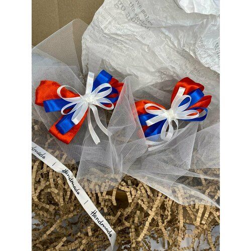Бантики "Триколор" выполнены в ярком и оригинальном дизайне. Они украшены изображением триколора, что придает аксессуару патриотический и стильный вид.