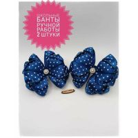 Красивый комплект резиночек с бантиками, собраны из репсовых лент синей и черной в горошек, Качественные резинки прослужат долго. Идеальны для школы, выпускного, праздника, торжества, как дополнение к подарку и для повседневного ношения. Пользуйтесь с удовольствием