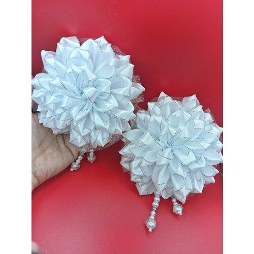 Шикарные белые банты на резинках, собраны из атласных лент с серебристым люрексом и в основании фатин В дополнение к бантиками идут сьемные подвески из жемчужных бусин. Диаметр бантиков 13 - 14 см, диаметр резинки 3.5 см, резиночки упругие и эластичные, прочные. Бантики идеально подходят для праздника, школы, выпускного, 1 сентября и для дополнения образа. Пользуйтесь с удовольствием.