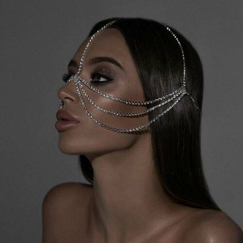 НАЙТИ ВЫГОДНЕЕ - Многослойная Цепочка с кристаллами для лица, стразы. цвет серебристый.