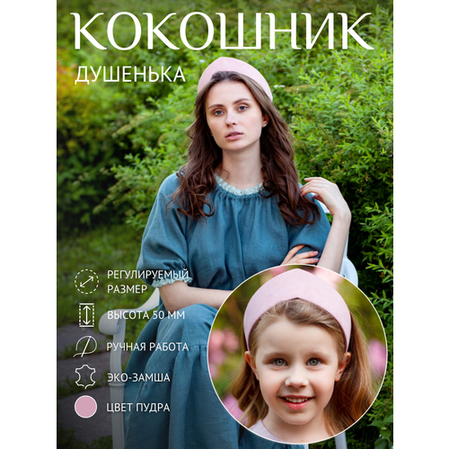 НАЙТИ ВЫГОДНЕЕ - Кокошник Розовая пудра регулируемый на голову, головной убор для девушки, для женщины Душенька из искусственной замши