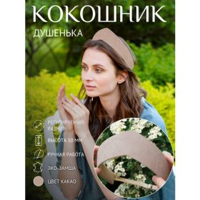 Кокошник Душенька – идеальный аксессуар для выпускного, свадьбы, корпоратива, похода в театр или любого другого праздничного мероприятия, а так же для повседневного использования. Изготовленный из мягкой искусственной замши бежевого цвета, он придаст вашему образу элегантность и шарм. Кокошник подходит не только для русского народного стиля, но также прекрасно сочетается с современными нарядами.