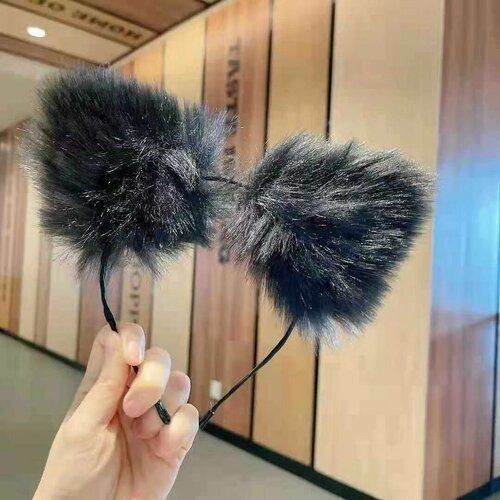 НАЙТИ ВЫГОДНЕЕ - Ободок на голову Кошачьи ушки чёрные меховые/ Вечерний аксессуар / Карнавал / Украшение на голову