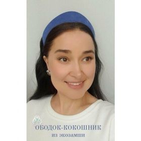 Полукруглый замшевый ободок-кокошник сапфирово-синего цвета.