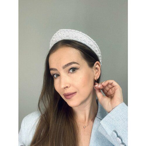 НАЙТИ ВЫГОДНЕЕ - Ободок-кокошник современный Анжелика с кружевом и хрустальными бусинами