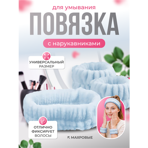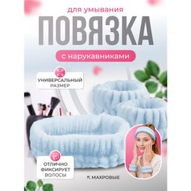НАЙТИ ВЫГОДНЕЕ - Повязка ободок для макияжа и умывания MALPACA махровая, с нарукавниками, голубая