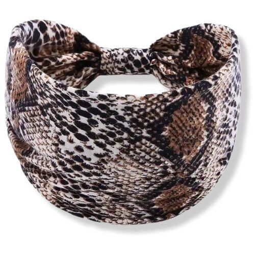 НАЙТИ ВЫГОДНЕЕ - Повязка на голову хлопковый трикотаж, принт бежевая рептилия