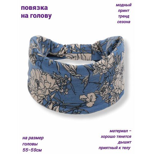 НАЙТИ ВЫГОДНЕЕ - Повязка на голову трикотажная, принт голубая бежевые цветы