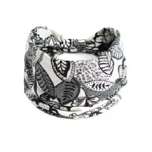 НАЙТИ ВЫГОДНЕЕ - Повязка на голову трикотажная, принт бело-серые листья