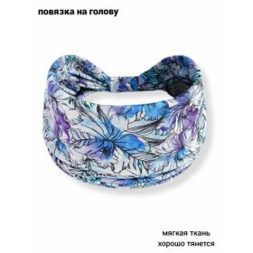 НАЙТИ ВЫГОДНЕЕ - Повязка на голову трикотажная, принт акварельные цветы голубой