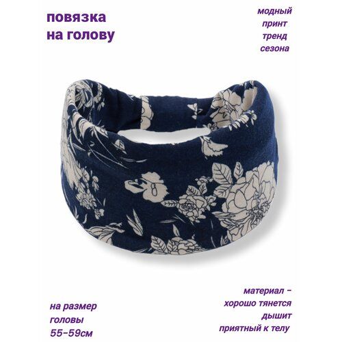 НАЙТИ ВЫГОДНЕЕ - Повязка на голову трикотажная, принт синяя светлые цветы