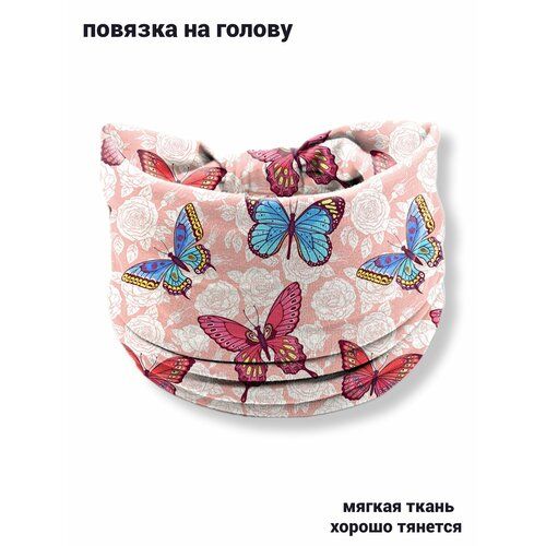 НАЙТИ ВЫГОДНЕЕ - Повязка на голову трикотажная, принт розовая бабочки