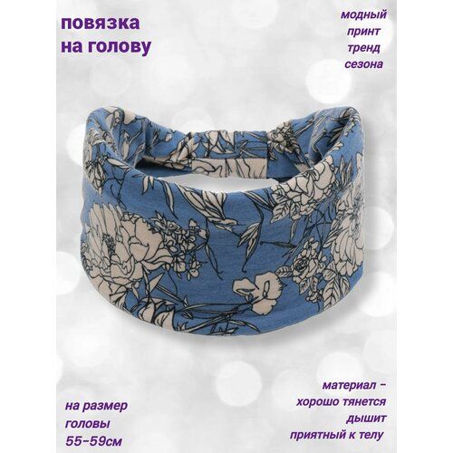НАЙТИ ВЫГОДНЕЕ - Повязка на голову трикотажная, принт голубая бежевые цветы