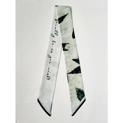 Лента твилли с принтом "Цветы" выполнена в базовых цветах - зеленом и белом, с абстрактным принтом. Материал изготовления - полиэстер, что делает аксессуар легким и приятным на ощупь.