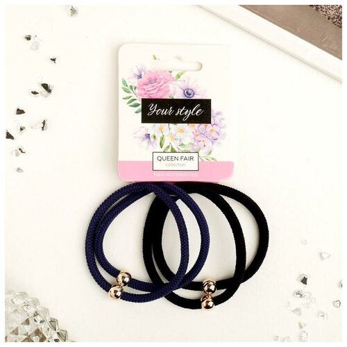 НАЙТИ ВЫГОДНЕЕ - Резинка для волос Плетение (набор 4 шт) чёрный синий