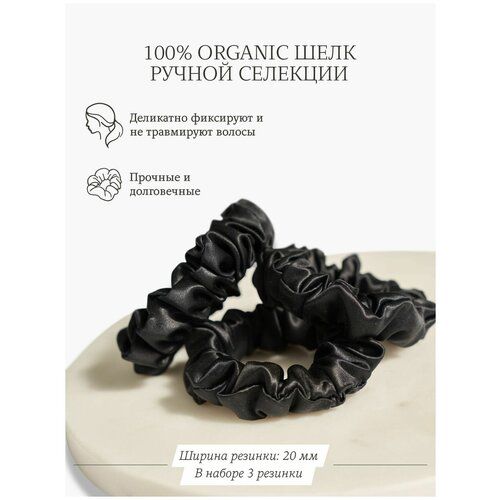 НАЙТИ ВЫГОДНЕЕ - Шелковые резинки для волос Ayris Silk, элитный 100% натуральный шелк, средние, набор 3 шт, цвет глубокий чёрный