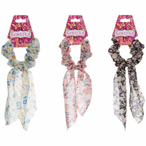 Размер резинки составляет 8 см в диаметре, что делает ее универсальной для всех типов волос. Изготовлена из текстиля, что придает ей мягкость и легкость. Резинка доступна в трех цветах: светло-голубом, пастельном розовом и темном с цветами, что позволяет выбрать подходящий вариант для любого случая.
