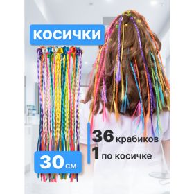 НАЙТИ ВЫГОДНЕЕ - CHARITES / Резинки для волос детские с косичками цветные пряди с заколкой крабик 36 шт по 1 косичке