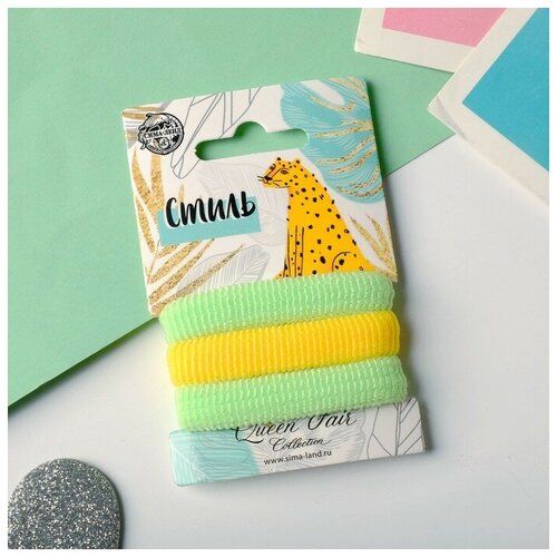 НАЙТИ ВЫГОДНЕЕ - Queen fair Резинка для волос Стиль (набор 3 шт.) 5,5 см, салатовый, жёлтый