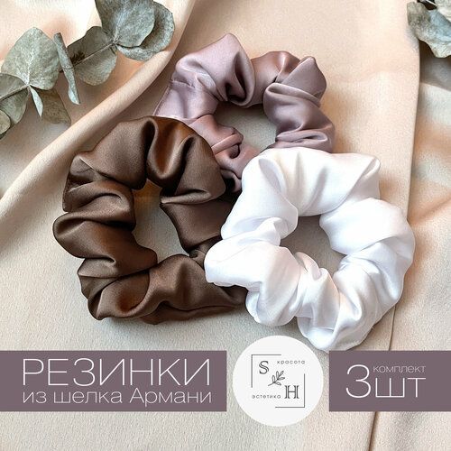 Объемная и мягкая резинка для волос из искусственного шелка Армани для девушек и девочек - 3 шт. Не спутывают и не ломают, заботясь о здоровье и красоте волос. Шелковые резинки крепко держат пучок и хвост на 2-3 оборота, не тянут, не соскальзывают. Не вырывают волосы как силиконовые резинки. Для густых и тонких волос. Для объемных причесок, косичек, пучка, хвоста. Красивые разноцветные шелковые резиночки изящно смотрятся на волосах. Так же красиво смотрятся на руке в виде браслета. Отличный вариант для подарка подруге, маме, сестре, дочке. Качественно сшиты вручную.