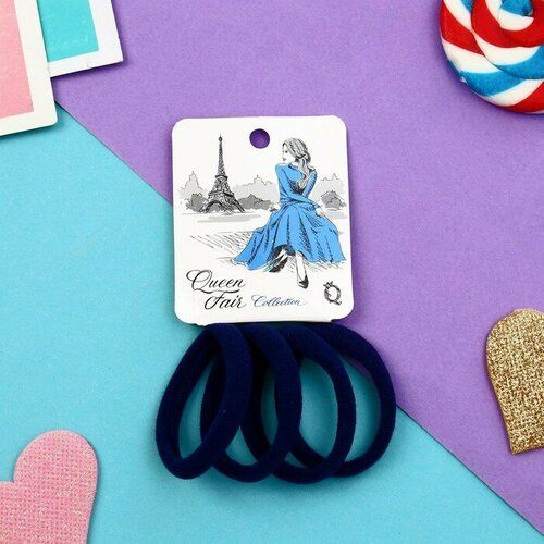 НАЙТИ ВЫГОДНЕЕ - QF Резинка для волос Марлен (набор 4 шт) фантазии, 4 см, синий