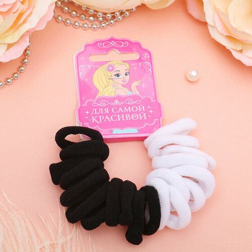 НАЙТИ ВЫГОДНЕЕ - Резинка для волос Махрушка (набор 20 шт) классика, чёрный белый