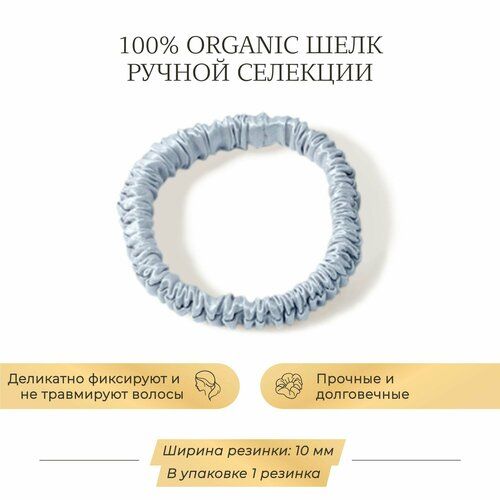 НАЙТИ ВЫГОДНЕЕ - Шелковая резинка для волос Ayris Silk, элитный 100% натуральный шелк, цвет серебристо-голубой (Узкая, 1 шт)