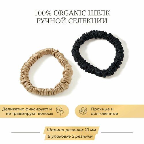 НАЙТИ ВЫГОДНЕЕ - Шелковые резинки для волос Ayris Silk, элитный 100% натуральный шелк, цвет глубокий чёрный/классический бежевый (Узкие, 2 шт)