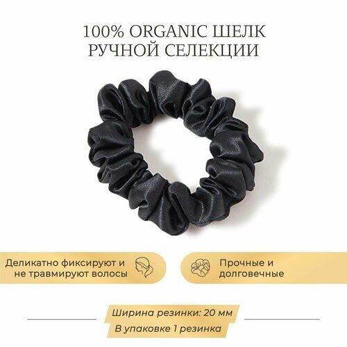 НАЙТИ ВЫГОДНЕЕ - Шелковая резинка для волос Ayris Silk, элитный 100% натуральный шелк, цвет глубокий чёрный (Средняя, 1 шт)