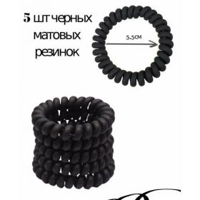 Набор резинок для волос «Пружинка матовая черная» из 5 штук (внешний диаметр 5.5 см.) предназначен для создания различных причесок и фиксации волос.