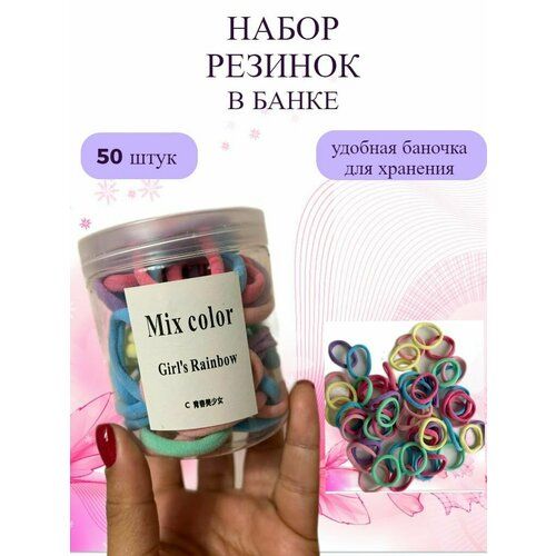НАЙТИ ВЫГОДНЕЕ - Резинки для волос разноцветные MIX 50 шт. / Комплект резинок для волос в банке
