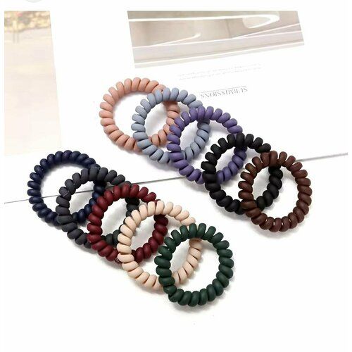 Набор резинок-пружинок для волос включает - 10 штук матовых спиралек резинок разных цветов, которые помогут создать неповторимый образ. Внешний диаметр резинок 5,5 см.
