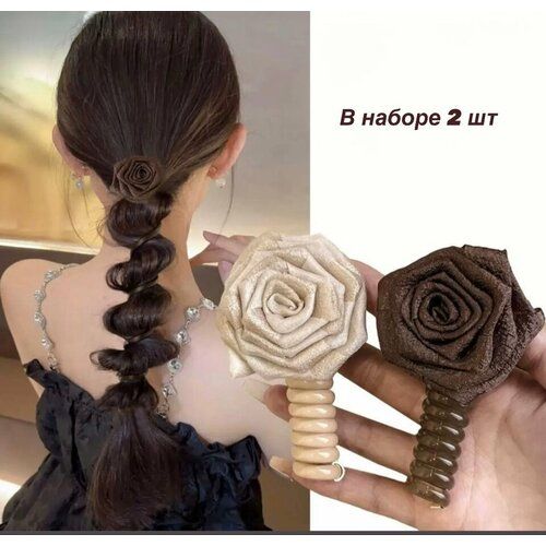 набор Резинок пружинок для волос - незаменимый аксессуар для женщин и девушек всех возрастов. Стильные резиночки помогут создать красивую и аккуратную прическу на каждый день и на особые случаи. Резинки с цветами средней упругости - это качественный и прочный материал, который не теряет своей формы . В наборе 2 штуки (шоколадного и молочного цвета)- популярные цвета этого года,