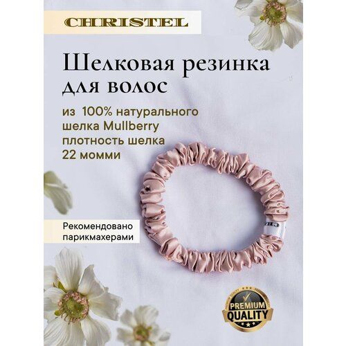 Шелковые резинки "CHRISTEL" изготовлены из 100% натурального шелка Mullberry наивысшего качества плотностью 22 momme. Данный тип шелка очень прочный и долговечный. Резинки хорошо держат как густые, так и тонкие волосы. Шелковые резинки не вырывают волосы при снятии, а благодаря легкому и скользящему снятию, они полируют волосы, придавая им зеркальный блеск. Также они не оставляют заломов на волосах и предотвращают появление секущихся волос. Шелковые резинки не электризуют волосы. Натуральный шелк Mullerry является гипоаллергенным материалом, поэтому идеально подходит для деликатного ухода за волосами косичек, пучка, высоких хвостов или расслабленной косы на ночь. Нежная шелковая резинка отлично сочетается с заколками, невидимками и школьными бантами. При этом, выглядя очень красиво и стильно, бережно ухаживает за волосами. Резинки из натурального шелка бережнее для волос, чем силиконовые резинки или пружинки, которые могут выдирать и заламывать волосы. Резинка из шелка станет прекрасным аксессуаром на запястье (можно использовать как браслет на руку) внутренний диаметр 5 см, ширина: 1,2см, растягивается на 23 см. Ручная работа со строгим контролем качества. Рекомендации по уходу: рекомендована ручная стирка гелем для деликатных тканей или шампунем при температуре не выше 30 градусов. Сушить естественным путем, аккуратно расправив шелковую резинку.