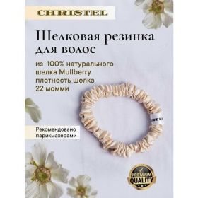 Шелковые резинки "CHRISTEL" изготовлены из 100% натурального шелка Mullberry наивысшего качества плотностью 22 momme. Данный тип шелка очень прочный и долговечный. Резинки хорошо держат как густые, так и тонкие волосы. Шелковые резинки не вырывают волосы при снятии, а благодаря легкому и скользящему снятию, они полируют волосы, придавая им зеркальный блеск. Также они не оставляют заломов на волосах и предотвращают появление секущихся волос. Шелковые резинки не электризуют волосы. Натуральный шелк Mullerry является гипоаллергенным материалом, поэтому идеально подходит для деликатного ухода за волосами косичек, пучка, высоких хвостов или расслабленной косы на ночь. Нежная шелковая резинка отлично сочетается с заколками, невидимками и школьными бантами. При этом, выглядя очень красиво и стильно, бережно ухаживает за волосами. Резинки из натурального шелка бережнее для волос, чем силиконовые резинки или пружинки, которые могут выдирать и заламывать волосы. Резинка из шелка станет прекрасным аксессуаром на запястье (можно использовать как браслет на руку) внутренний диаметр 5 см, ширина: 1,2см, растягивается на 23 см. Ручная работа со строгим контролем качества. Рекомендации по уходу: рекомендована ручная стирка гелем для деликатных тканей или шампунем при температуре не выше 30 градусов. Сушить естественным путем, аккуратно расправив шелковую резинку.