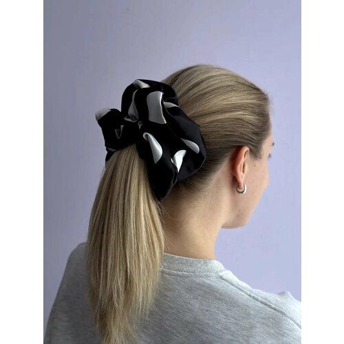 НАЙТИ ВЫГОДНЕЕ - Стильное украшение, резинка для волос атласная, черная в белый горох 20 см