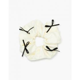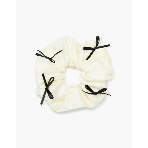 Молочная резинка из коллекции GJ с чёрными сатиновыми бантиками. Аксессуар из мягкого текстиля не травмирует локоны и подходит для создания аккуратных высоких хвостов и аккуратных пучков. Гарантийный срок товара 30 дней.
