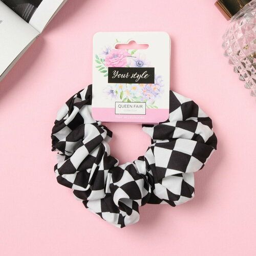 НАЙТИ ВЫГОДНЕЕ - Резинка для волос Орбита клетка стиль, 12 см, чёрно-белый