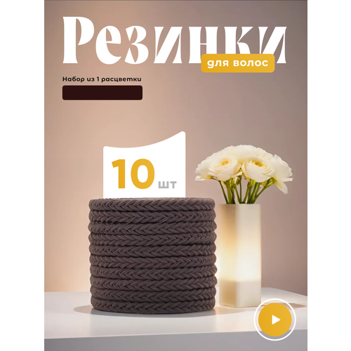 НАЙТИ ВЫГОДНЕЕ - Набор резинок для волос, тёмно-коричневый, текстиль, 10 штук