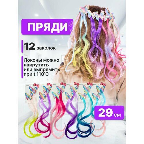 НАЙТИ ВЫГОДНЕЕ - CHARITES / Цветные пряди на заколках, аксессуары для волос 12шт