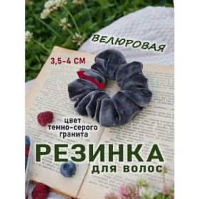 НАЙТИ ВЫГОДНЕЕ - Резинка для волос бархатная/велюр темно-серый гранит 1шт