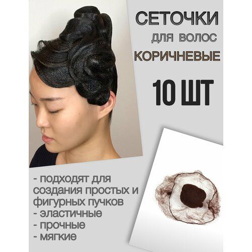 НАЙТИ ВЫГОДНЕЕ - Набор сеток для волос, 10 штук, коричневые, эластичные, незаметные