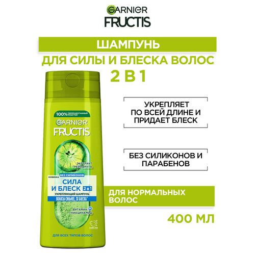 НАЙТИ ВЫГОДНЕЕ - GARNIER Fructis шампунь Сила и Блеск 2в1 Укрепляющий с витаминами и экстрактом грейпфрута для нормальных волос, 400 мл 400 мл 1 шт. грейпфрут 454 г