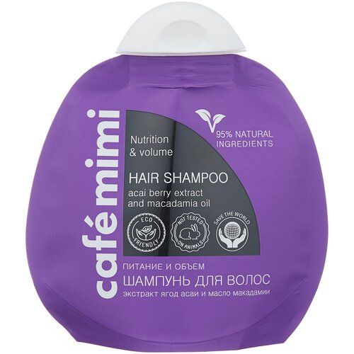 НАЙТИ ВЫГОДНЕЕ - Cafe mimi шампунь Питание и объем с экстрактом ягоды асаи и маслом макадамии, 100 мл