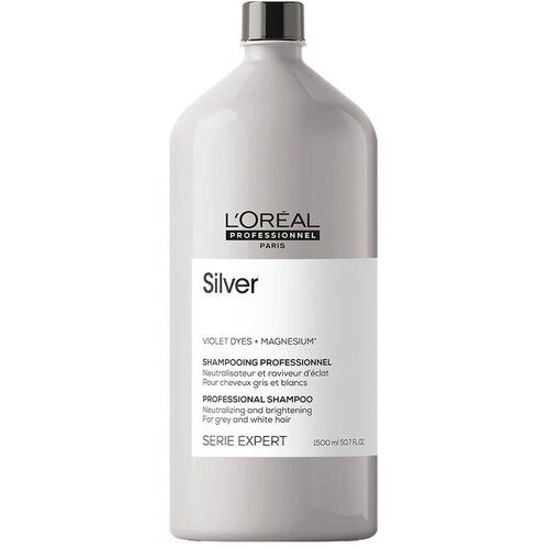 НАЙТИ ВЫГОДНЕЕ - Шампунь L'Oreal Professionnel Serie Expert Silver для нейтрализации желтизны осветленных и седых волос, 1500 мл
