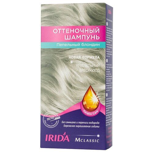 Оттеночный шампунь Ирида-М нежно окрашивает Ваши волосы в нужный цвет, хорошо справляется с седыми волосками. В одной упаковке шампуня укомплектовано 3 пакетика с краской.