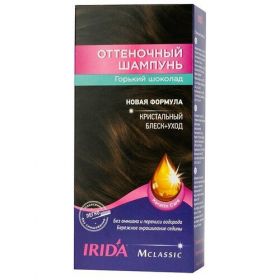 Оттеночный шампунь IRIDA Горький Шоколад предназначен для тех, кто хочет экспериментировать с цветом волос и менять образ. В одной упаковке шампуня содержится 3 пакетика с краской, которые можно использовать для обновления и выравнивания цвета между покрасками аммиачными красками.